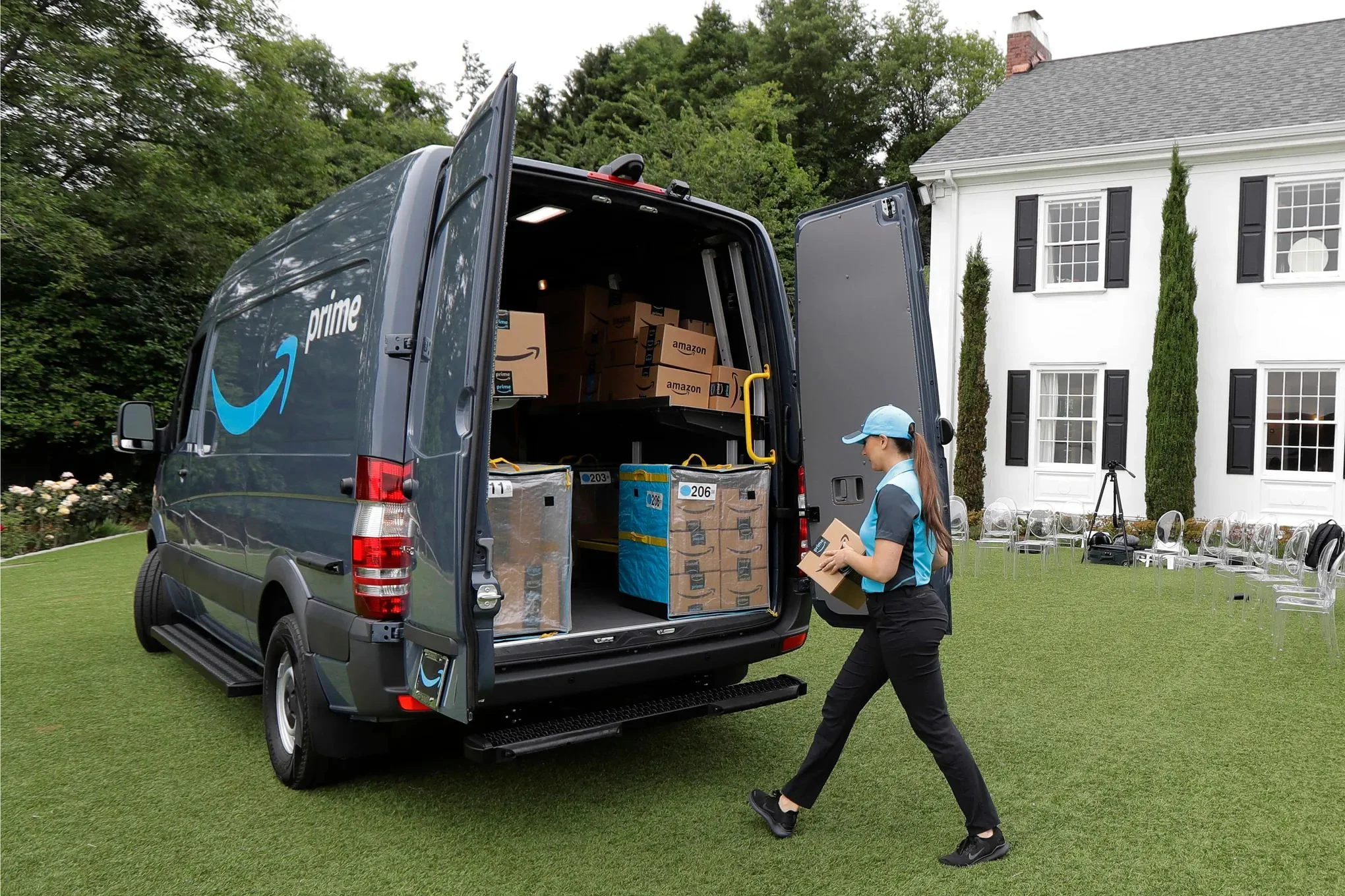 Follow the Amazon delivery app for navigation and delivery instructions
